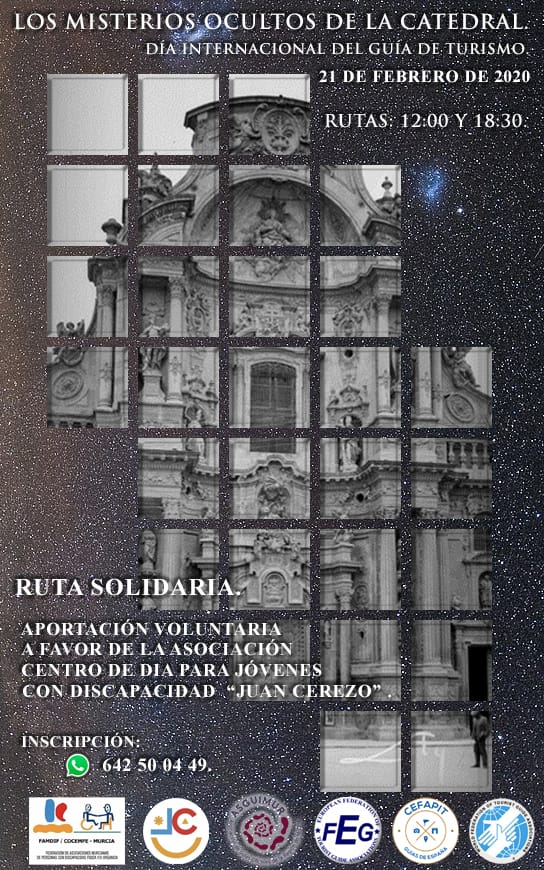 #ACTIVIDADES | 💛🌂🗺 Este viernes, con motivo del Día Internacional del Guía de Turismo, Asguimur Guías Oficiales de Turismo ha organizado la ruta solidaria y accesible: "Los misterios ocultos de la catedral". El precio a pagar tras la visita será voluntario e irá destinado a los jóvenes con discapacidad de nuestro centro.
